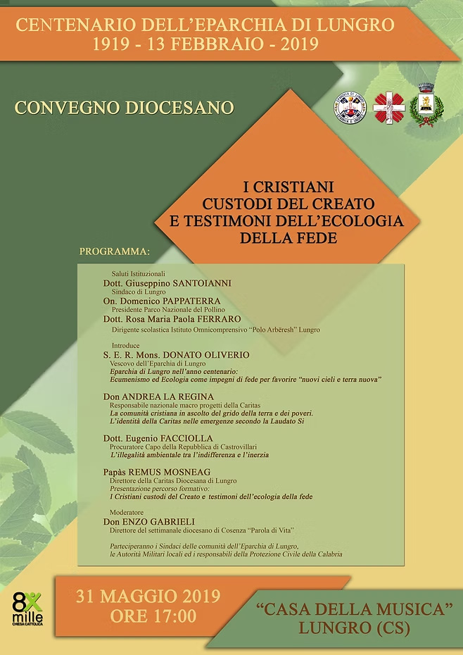 L’Eparchia di Lungro si estende su un vasto e non compatto territorio che presenta innumerevoli difficoltà di viabilità e logistiche. Ecco perché riteniamo che occorre far fronte alle varie situazioni di crisi e garantire che le attività di prevenzione e cura del creato assumano carattere permanente, dovendo tempestivamente dirigersi sia alla individuazione dei possibili rischi sia allo studio e alla predisposizione degli interventi da attuarsi al verificarsi dell’evento calamitoso.
